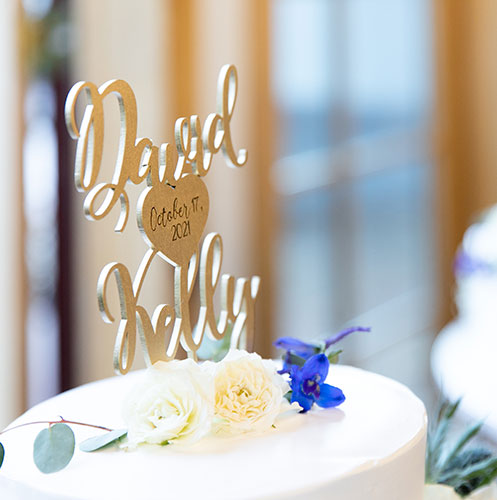 Personalisierter Caketopper mit 2 Namen in unterschiedlichen Farben und Materialien